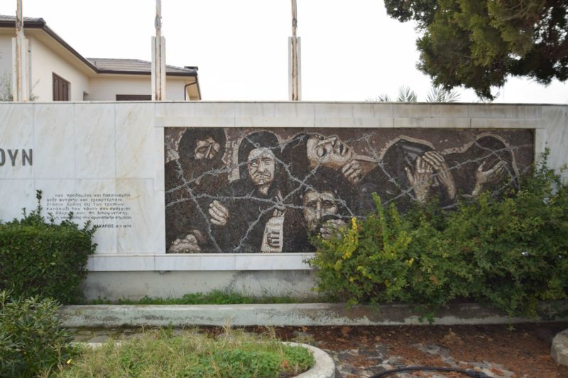 Στην είσοδο του Ακακίου, υπάρχει ένα επιβλητικό μνημείο που αποτελείται από ανδριάντα του Αρχιεπισκόπου Μακαρίου Γ’ που φιλοτεχνήθηκε από τον Νικόλαο Κοτζιαμάνη και μια ψηφιδωτή παράσταση που φιλοτεχνήθηκε από τον Κυριάκο Ταμανά.