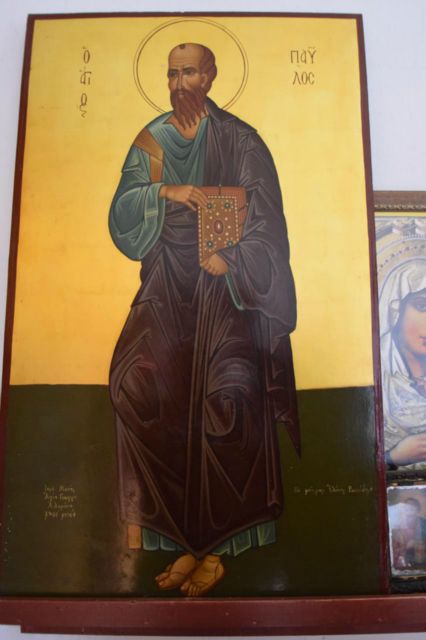 Το εκκλησάκι του Αποστόλου Παύλου βρίσκεται στο Συνοικισμό, στο περιβόλι του Xότζα. Στην τοποθεσία που είναι κτισμένη η εκκλησία παλαιότερα υπήρχε ένας σωρός από πέτρες του ποταμού. Ειδικότερα, για την ανέγερση της εκκλησίας χρειάστηκε εκτός από το σημείο όπου ήταν ο σωρός με τις πέτρες και ο χώρος πέριξ, ο οποίος παραχωρήθηκε από τη Χριστίνα Κώστα Κούτσουμπα και τον Δημήτρη Κυριάκου Μαραθεύτη.