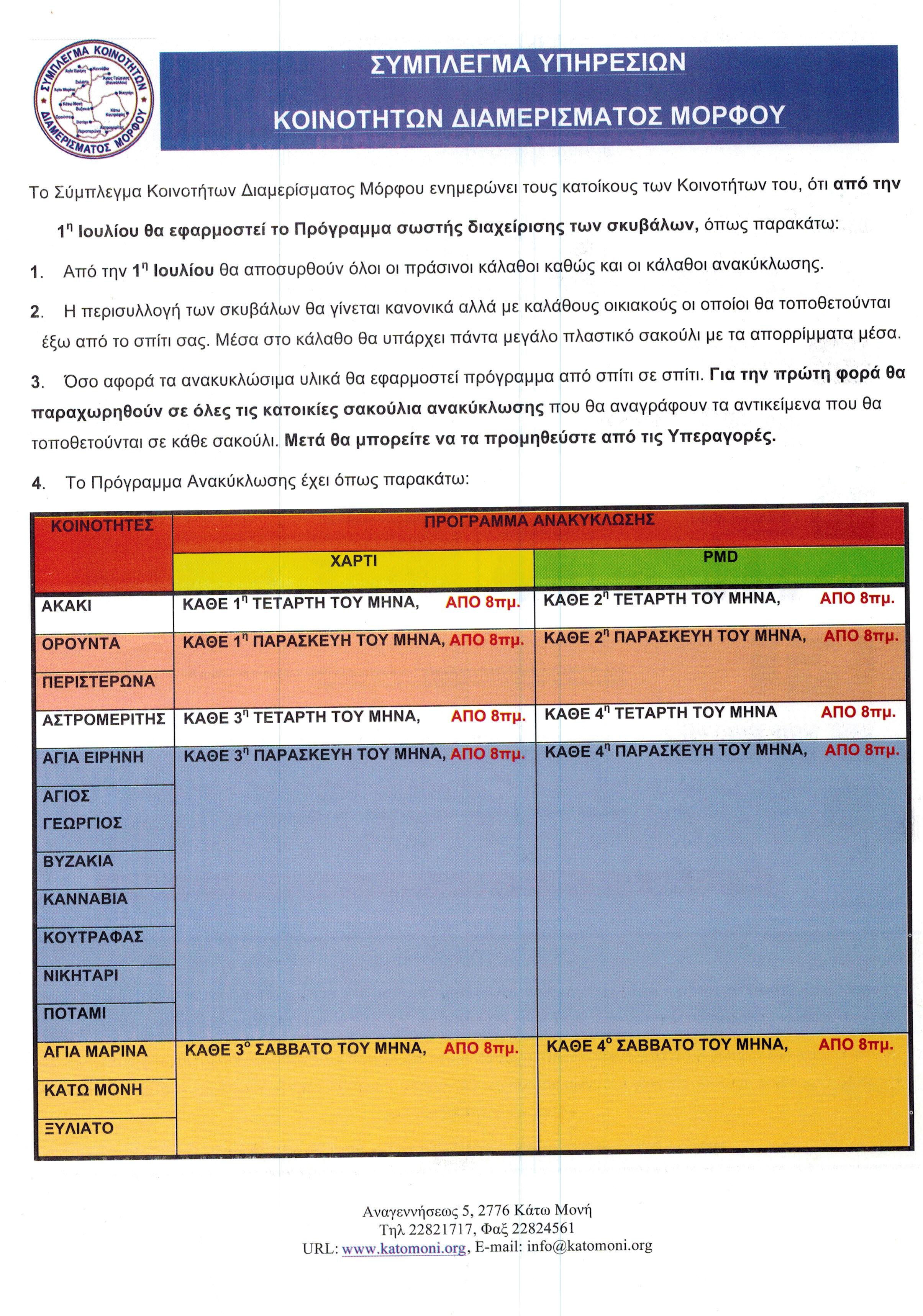 Πρόγραμμα σωστής διαχείρισης σκυβάλων από 1/7/2020